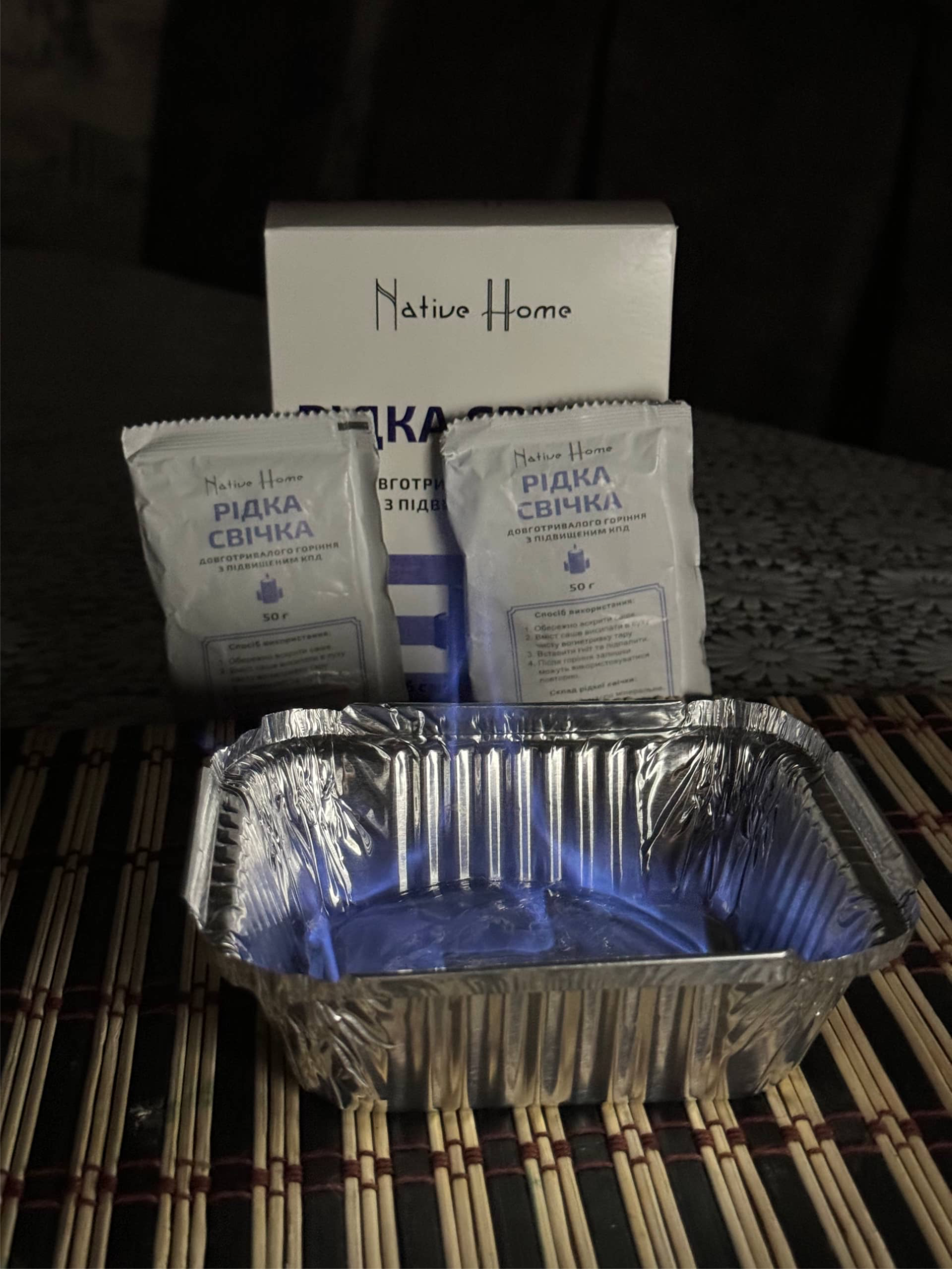 Продукт представлено у формі саше, що робить його зручним для використання та транспортування. Важливо, що для її використання підійде будь-яка жаростійка тара, яка є під рукою. Це може бути пуста скляна баночка або форма для запікання. Наша редакція, в ході експерименту, дійшла до висновку, що для більшої зручності, краще обирати тару з кришкою. Це допоможе швидко та без додаткових складнощів затушити полумʼя, просто перекрив гелю кисень.